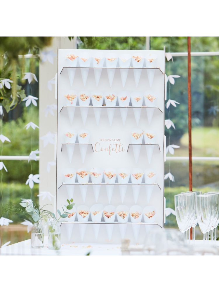 Le mur de confettis peut accueillir 32 sachets de cornets. Le confetti n'est pas inclus.