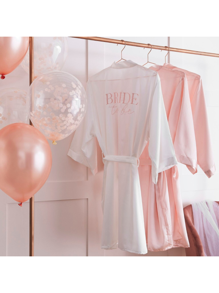Le luxueux kimono blanc a 'Bride To Be' au dos avec des lettres décoratives et vous pouvez le nouer facilement avec la ceinture fournie.
