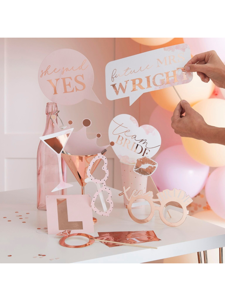 Entrez dans un photomaton ensemble ou créez un bel arrière-plan et prenez de belles photos avec ces magnifiques accessoires de fête de Ginger Ray lors de votre Hen Party.