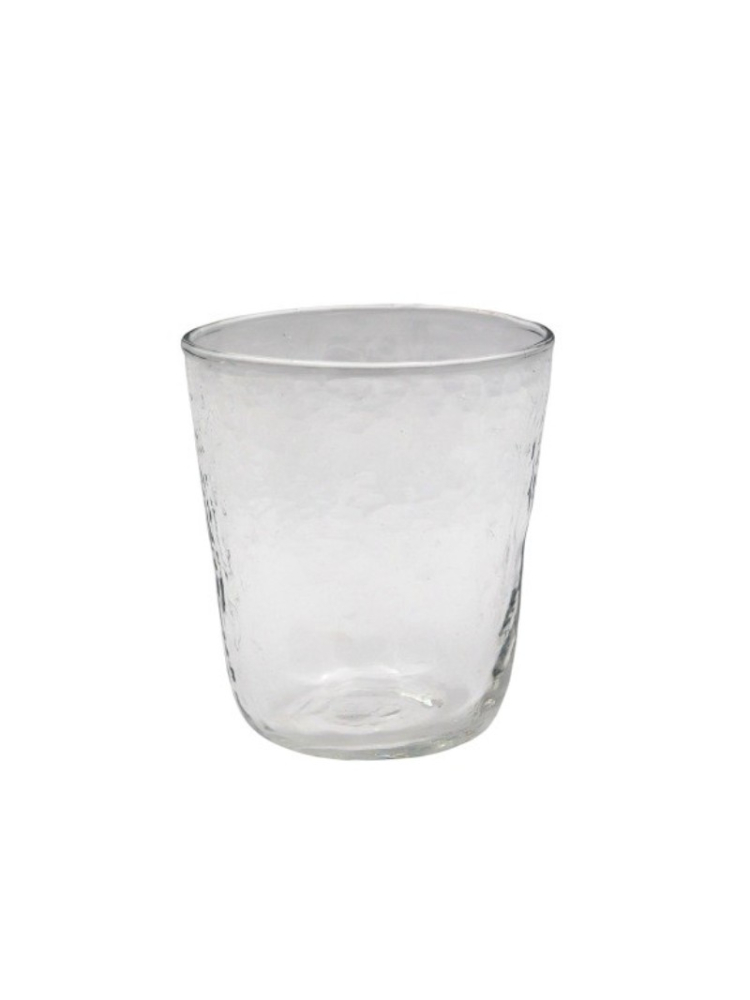 Fabriqué à la main en verre recyclé et fini par la texture martelée signature de Leeff, chaque pièce présente de subtiles imperfections qui lui confèrent un caractère unique. Sa forme légèrement pondérée tient naturellement en main et se prête aussi bien à l'eau qu'aux boissons non alcoolisées.