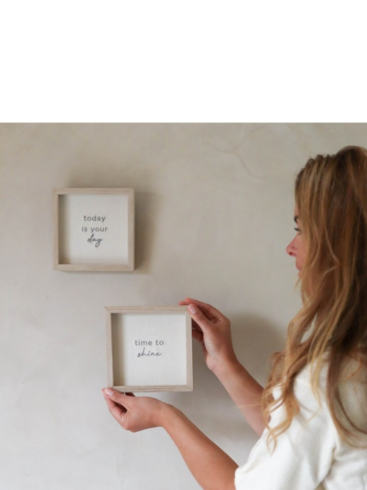 Un joli cadre décoratif Leeff Dion de 15 x 15 cm, en lin brodé « À toi de briller ». À poser ou à suspendre, il apporte une touche douce et lumineuse à la maison. Une délicate idée cadeau pour marquer un moment spécial, proposé en deux variantes.