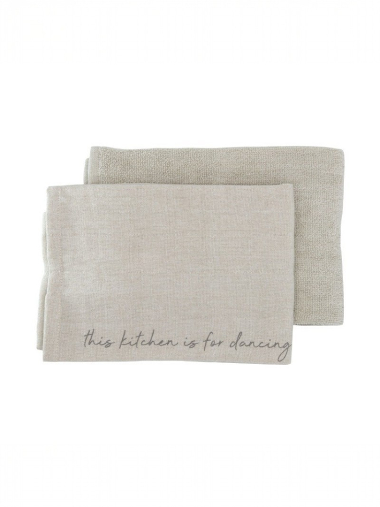 18785 Kitchen & Tea Towel set Karin - This kitchen is for dancing Natural