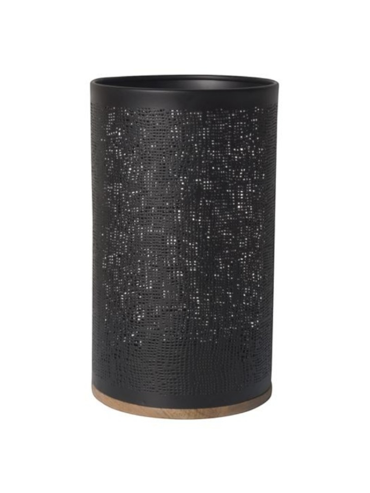 Faite en bois chaleureux et finition noir mat, la lanterne Lou diffuse la flamme à travers un motif ajouré. D’environ 15 x 25 cm, elle se déplace facilement de la table au jardin et trouve sa place sur une console ou une cheminée.