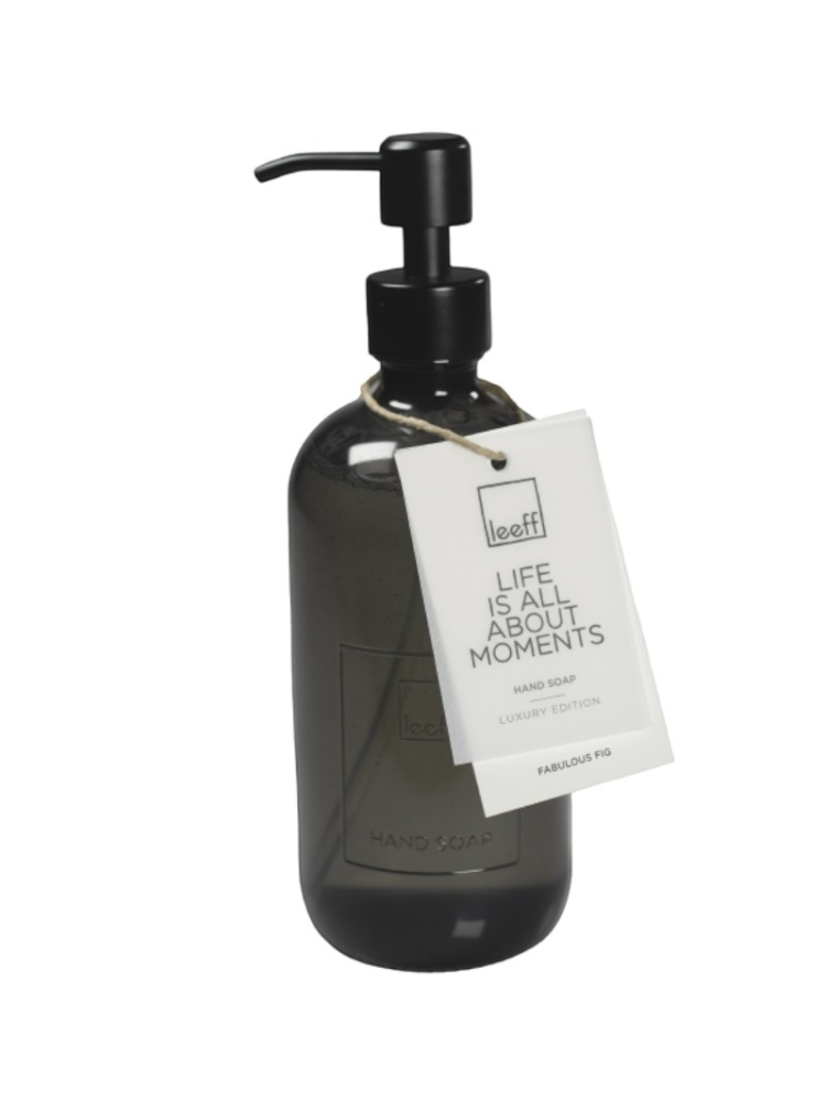 Découvrez le flacon savon mains Leeff — Fabulous Fig en verre gris, un objet qui élève la routine au rang de rituel.