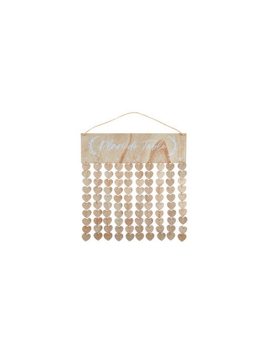 Tableau de sièges de mariage en bois naturel SX-8842 avec des étiquettes en forme de cœur suspendues. Une façon charmante d'orienter les invités vers leurs tables. Ce tableau unique ajoute une touche rustique et élégante, tout en facilitant l'organisation de votre événement. Offrez à vos invités une expérience mémorable et organisée.